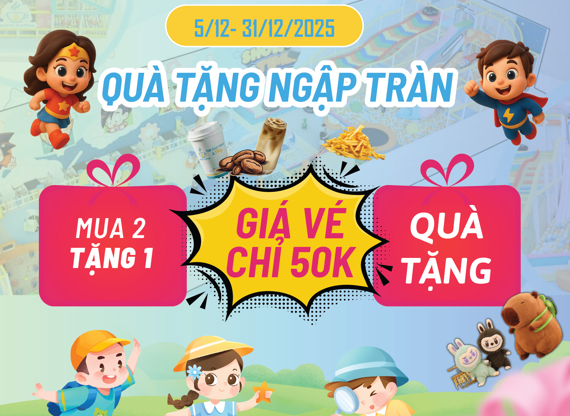Tận hưởng combo 2 đồ uống người lớn + 1 nước ép trẻ em + vé khu vui chơi với ưu đãi 20% vào cuối tuần!