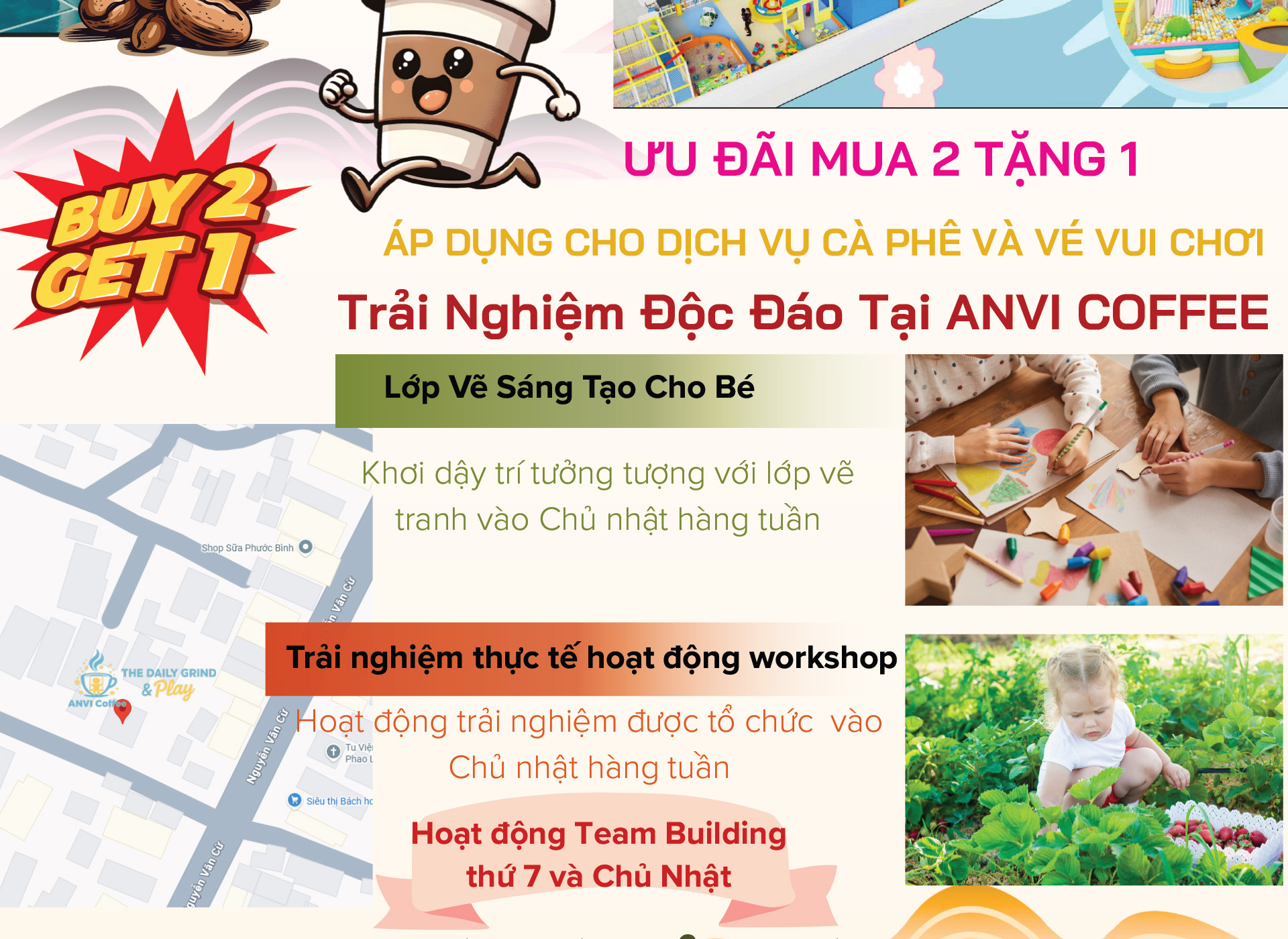 Trong nhịp sống hiện đại, việc tìm kiếm một không gian lý tưởng để cả gia đình cùng thư giãn, kết nối và tận hưởng thời gian bên nhau không phải lúc nào cũng dễ dàng. Hiểu được nhu cầu đó, ANVI COFFEE ra đời như một mô hình độc đáo – kết hợp giữa quán cà phê phong cách và khu vui chơi trẻ em an toàn, sáng tạo.