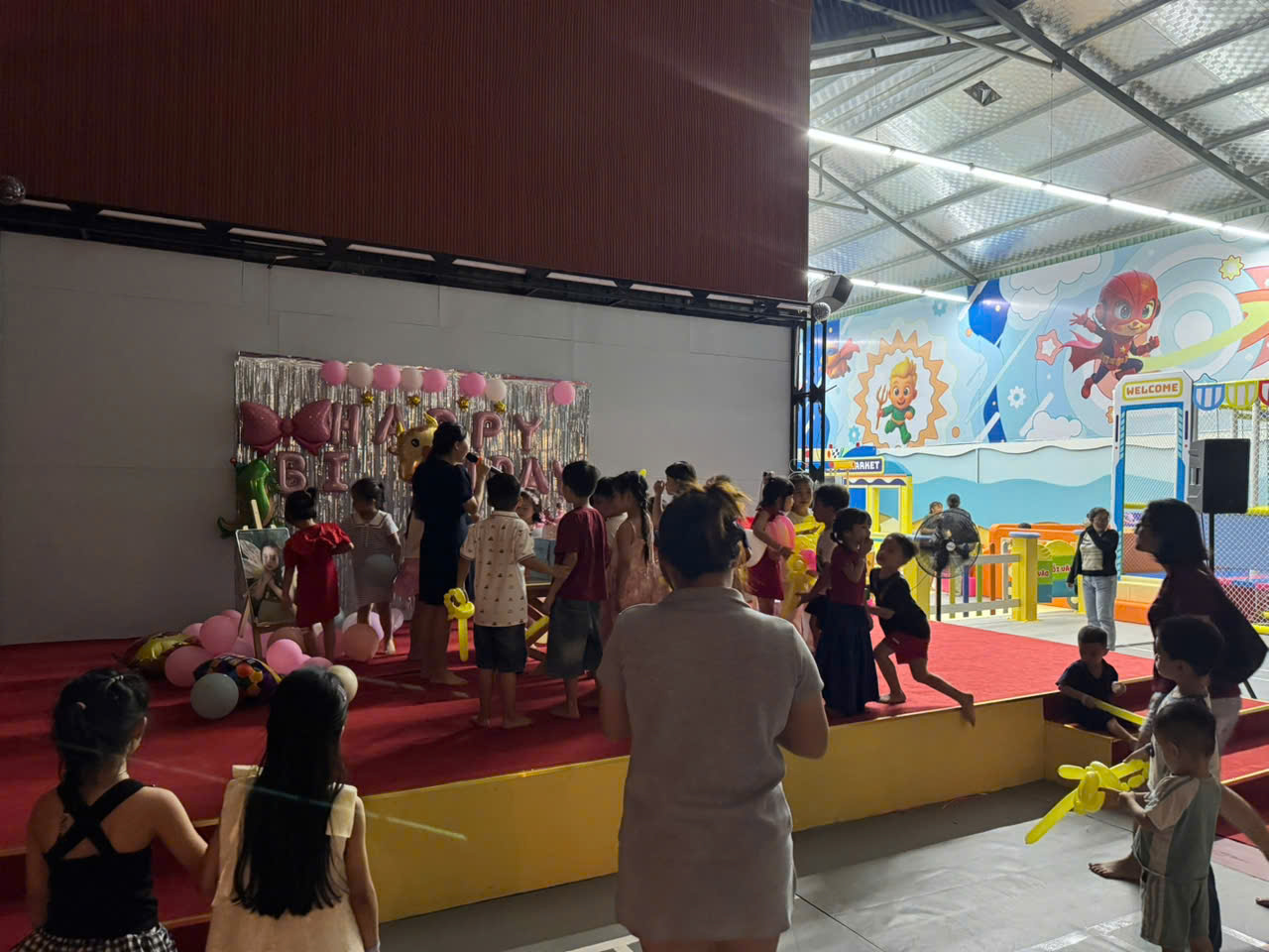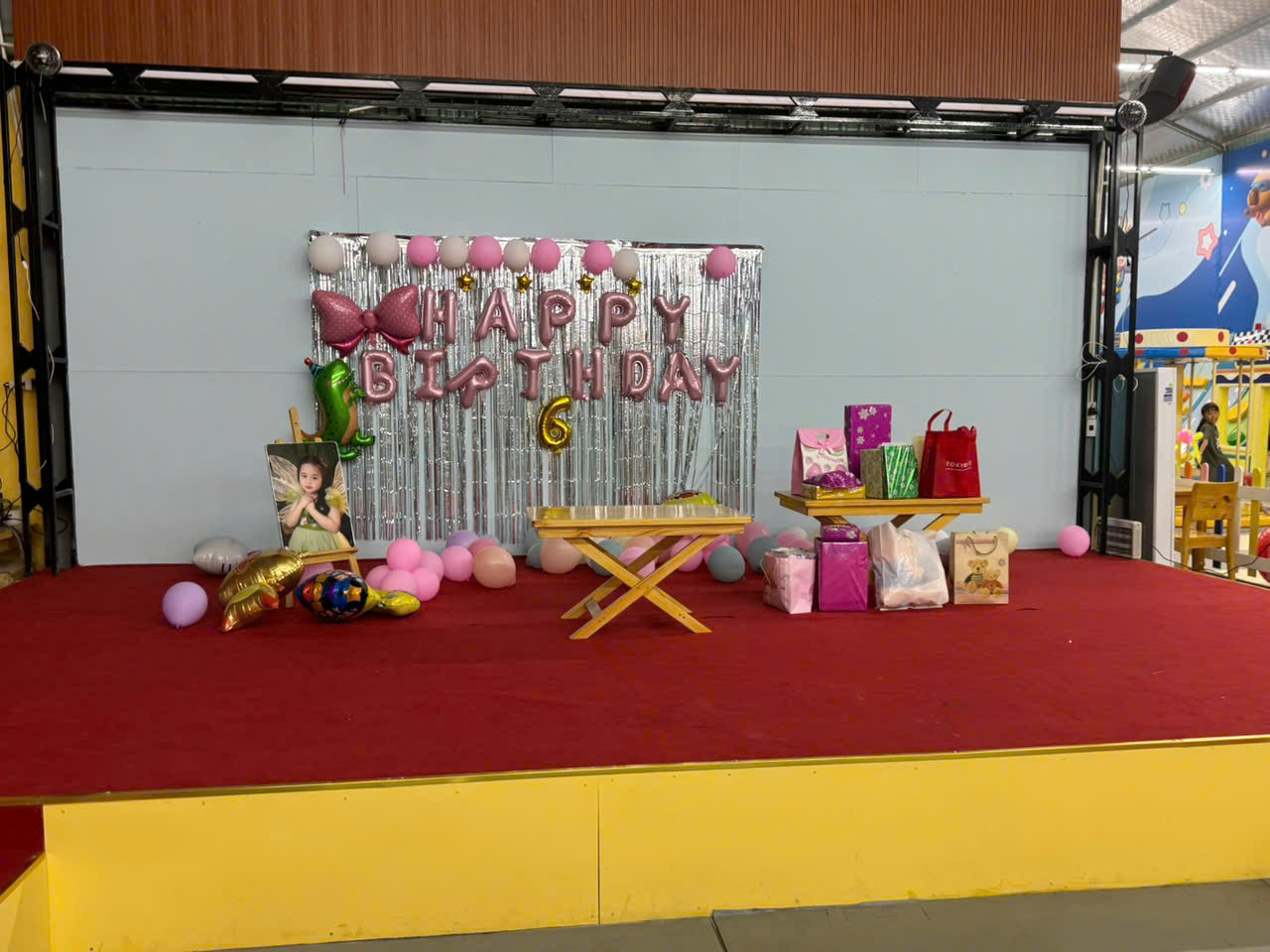 - Trang trí chuyên nghiệp: Từ bóng bay, backdrop, bàn tiệc đến khu vực chụp hình đều được chuẩn bị theo chủ đề yêu thích của bé.